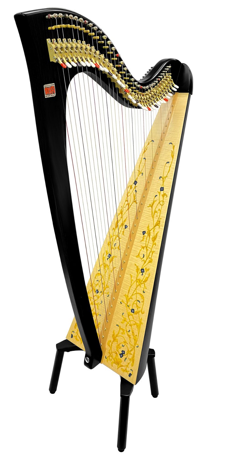 初心者の方から経験豊富なハープ奏者にもどちらにも適したハープです。レバー操作と弦のタッチはお子様にも簡単、ハープの脚は取り外し可能となっています。