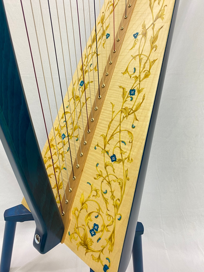 初心者の方から経験豊富なハープ奏者にもどちらにも適したハープです。レバー操作と弦のタッチはお子様にも簡単、ハープの脚は取り外し可能となっています。