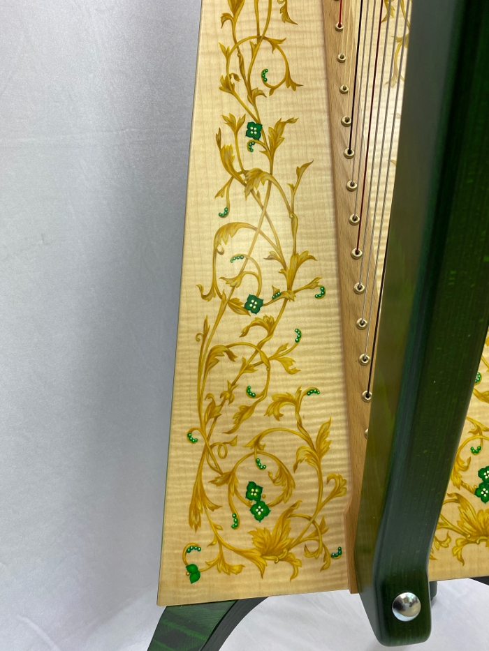 初心者の方から経験豊富なハープ奏者にもどちらにも適したハープです。レバー操作と弦のタッチはお子様にも簡単、ハープの脚は取り外し可能となっています。