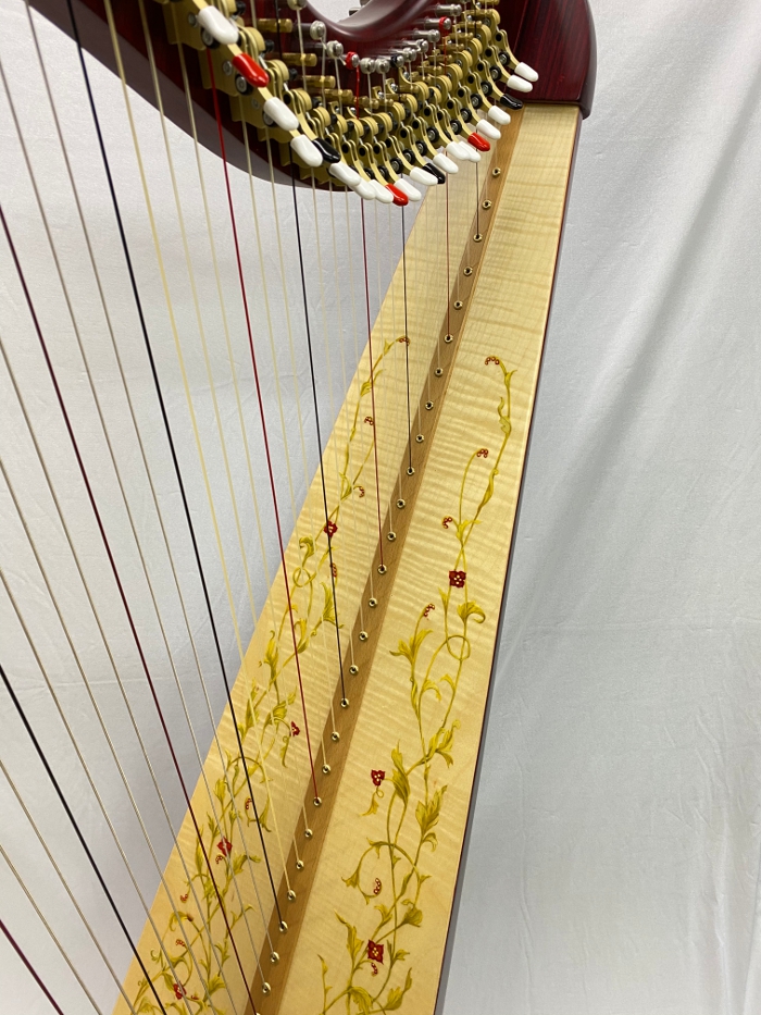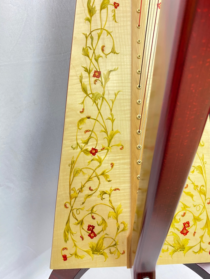 初心者の方から経験豊富なハープ奏者にもどちらにも適したハープです。レバー操作と弦のタッチはお子様にも簡単、ハープの脚は取り外し可能となっています。