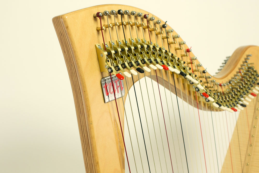 初心者の方から経験豊富なハープ奏者にもどちらにも適したハープです。レバー操作と弦のタッチはお子様にも簡単、ハープの脚は取り外し可能となっています。