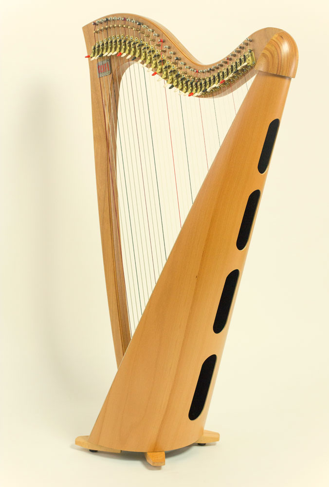 ウェールズ語でChiff Chaffという鳥を意味します。ここ西ウェールズのテイフィー渓谷では鳥のさえずりを聞くことができます。この34弦はStudent Harpです。使用者の多くの要望により以前のモデルに改良を加え完成されました。